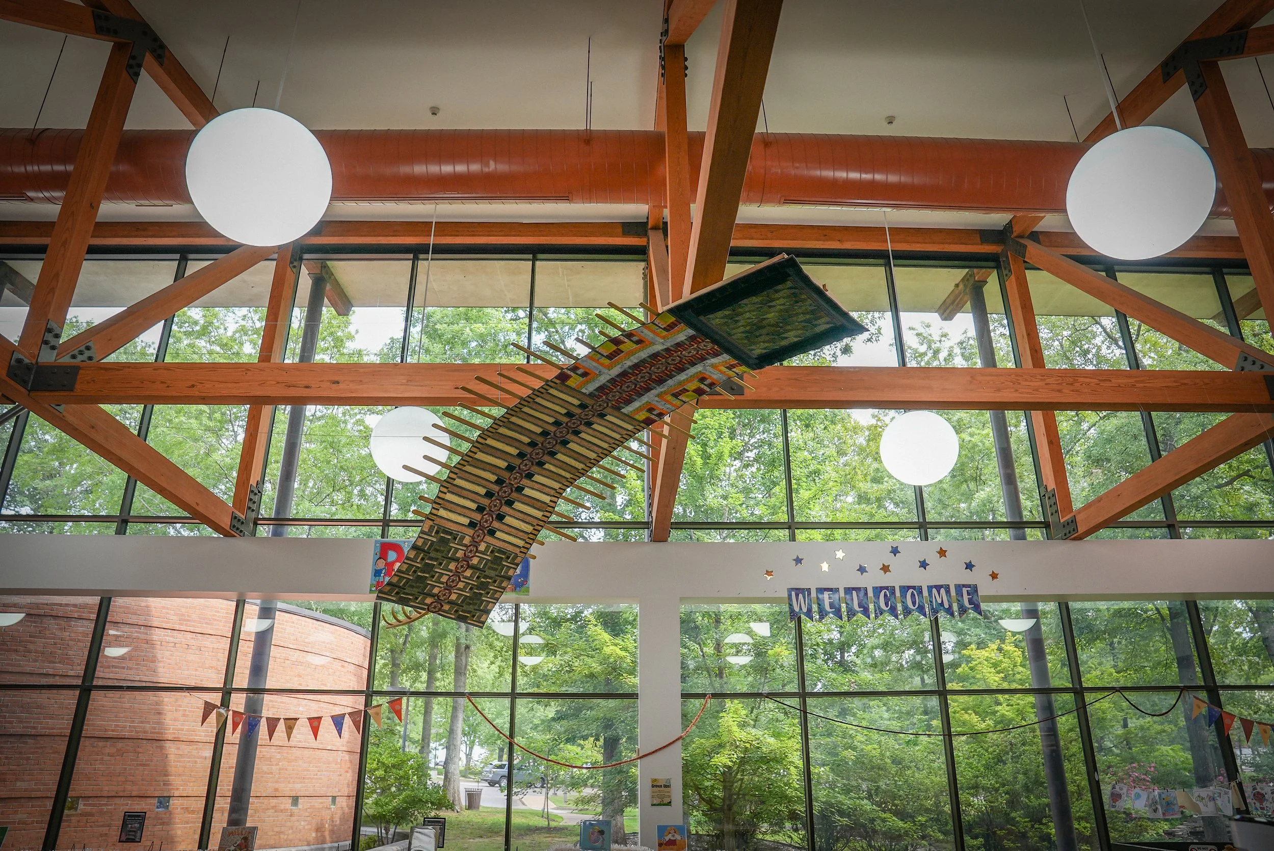 Amalgamation is a 15-foot-long sculpture that transforms the structure of a Chinese Dragon Centipede kite into a human spine. Crafted from wood and embellished with a quilted patchwork of clothing and upholstery fabric donated by friends and family, this colossal sculpture unifies Eastern and Western cultures, personal histories, and artistic expression. This piece invites viewers to consider the intricate relationships between people and cultures, questioning the concept of assimilation in favor of more reciprocal and rewarding cultural interaction.